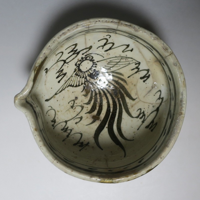 湖東焼 鉄絵 鳳凰文 片口 鉢