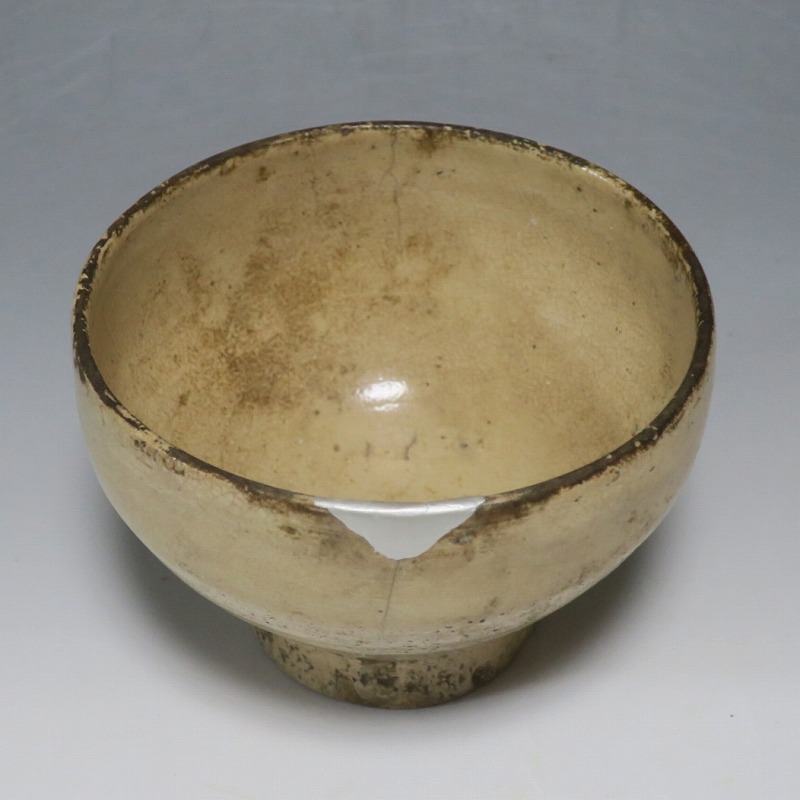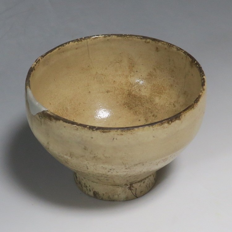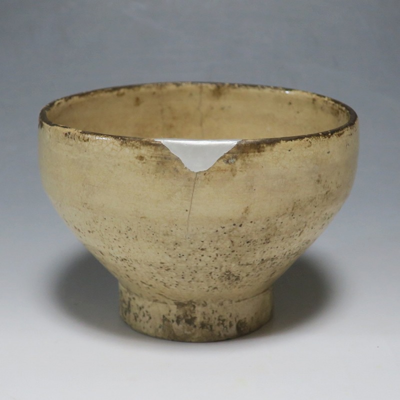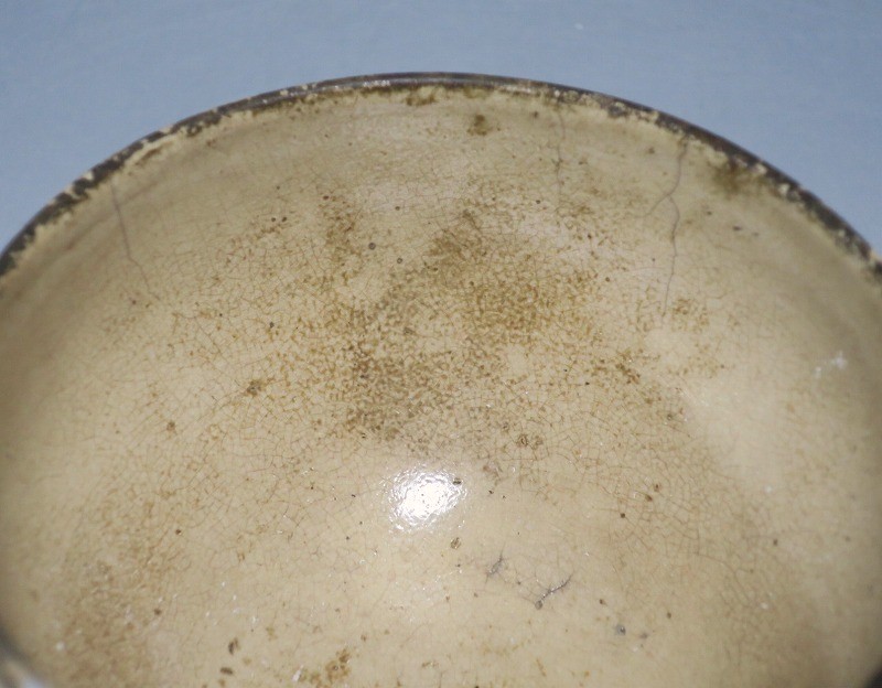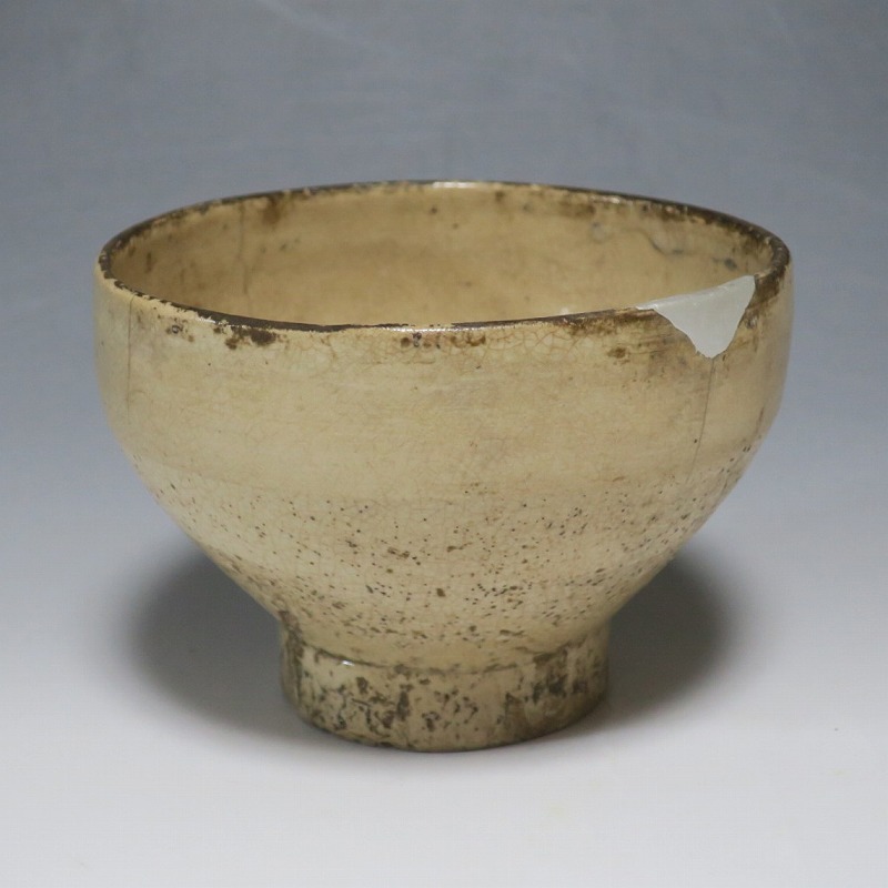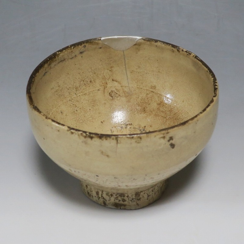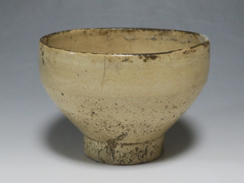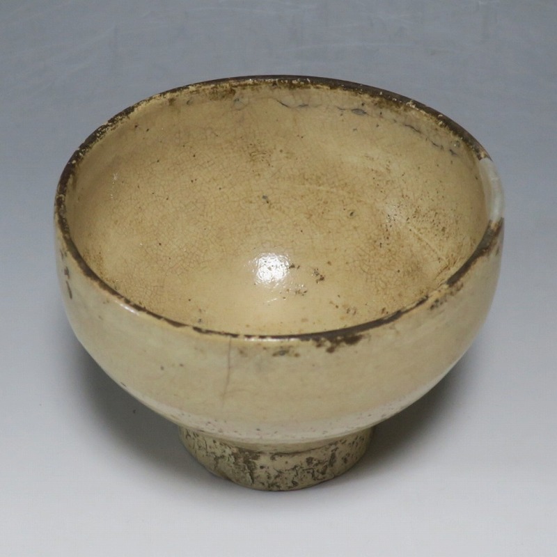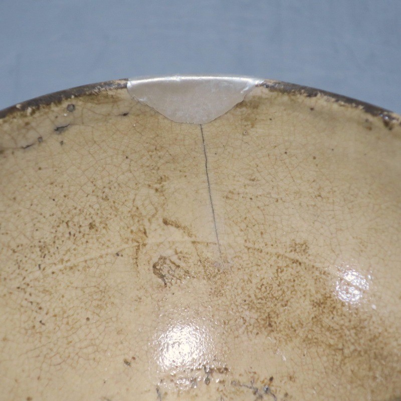 経年の汚れがつき、口辺に約3cmの銀直しとニュウが数本入り、高台に窯傷があります。状態は写真でご確認ください。