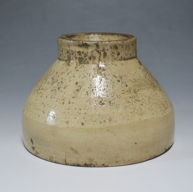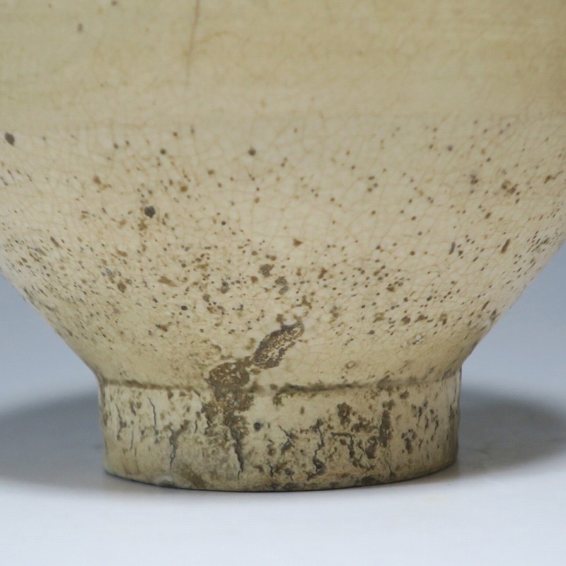 呉器茶碗は、李朝時代に作られた禅院で用いる椀形の御器に似ていることに由来する茶碗の総称です。呉器茶碗は見込みが深く高台が外に開く特徴があり、形や色によって名称が異なります。 本品は呉器と井戸脇を足して2で割ったような雰囲気を持つ茶碗。高台内の施釉や高台の中央がとがった兜巾から本品が李朝の作品だと鑑定できます。釜山窯周辺で作られた茶碗でしょう。碗形の味わい深い茶碗です。普段使いの茶器としてご使用ください。
