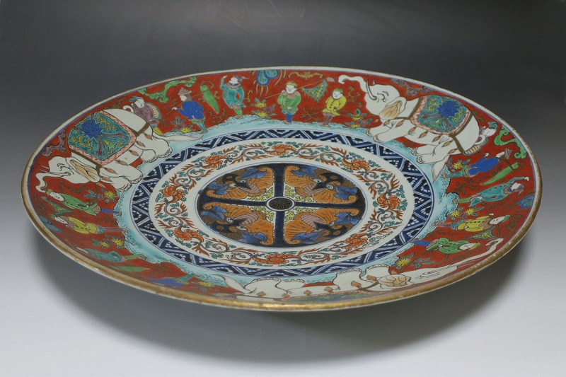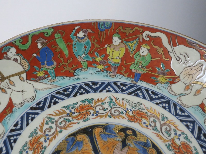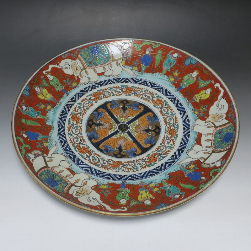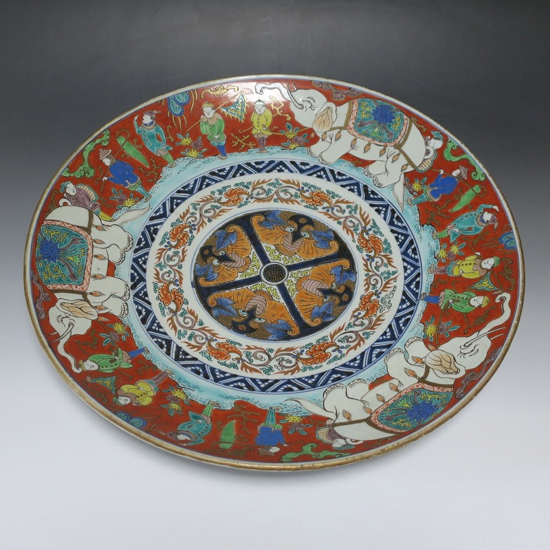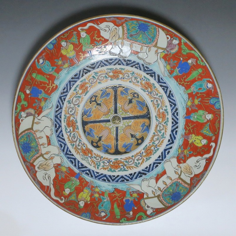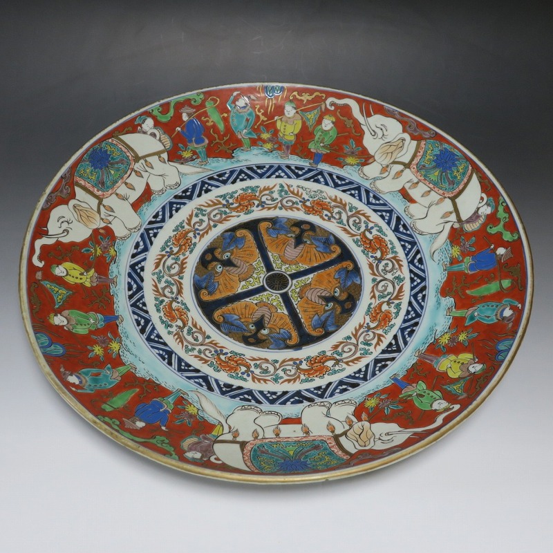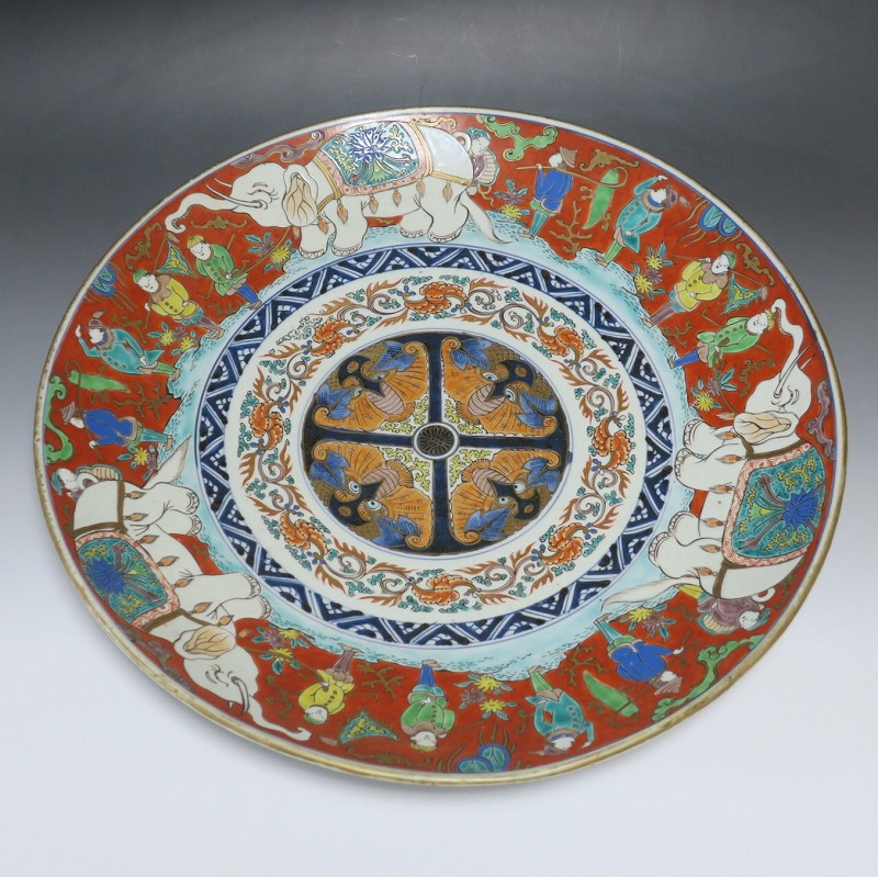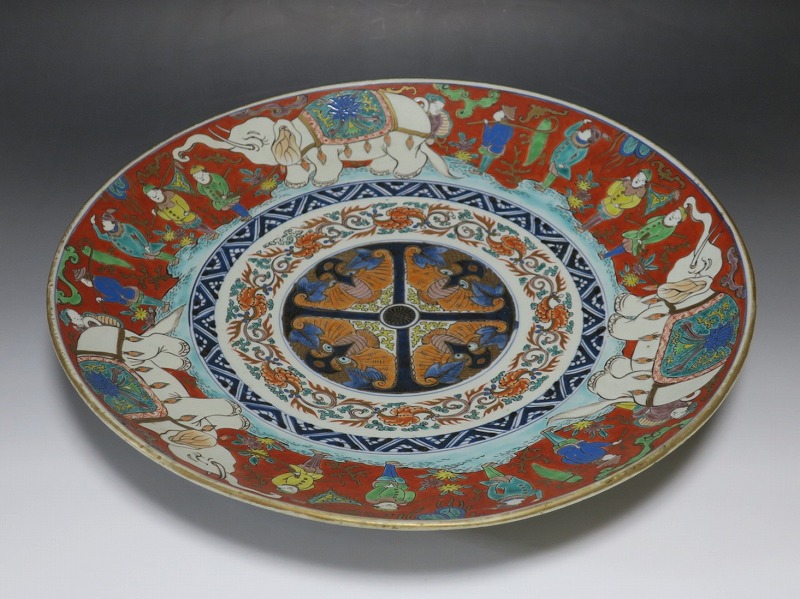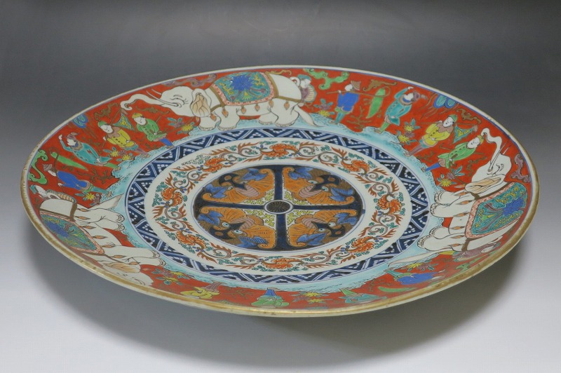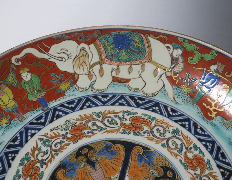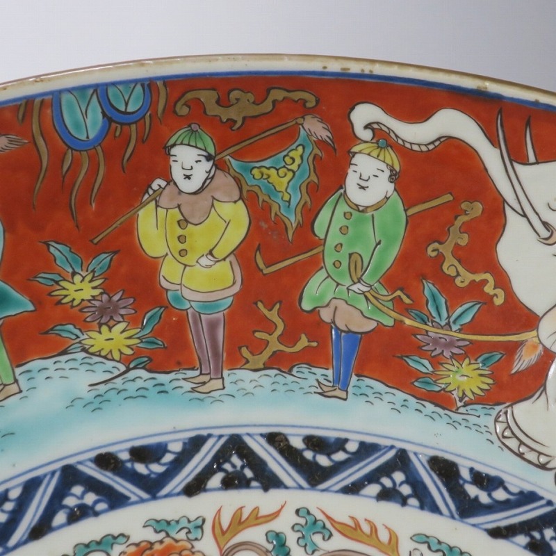 伊万里焼 色絵 韃靼人と白象 大皿