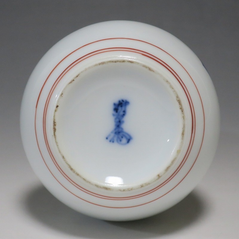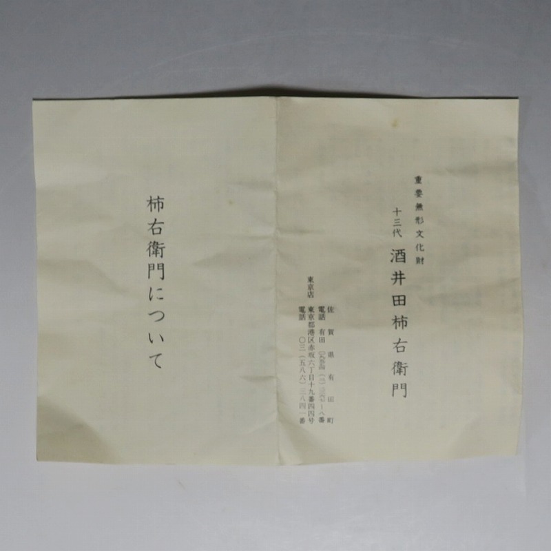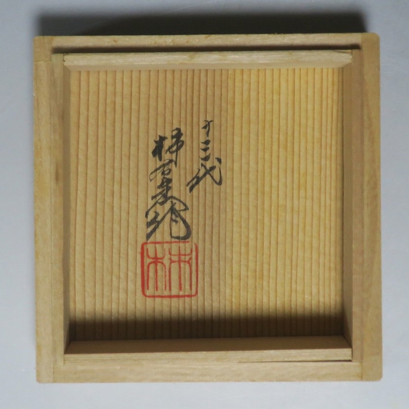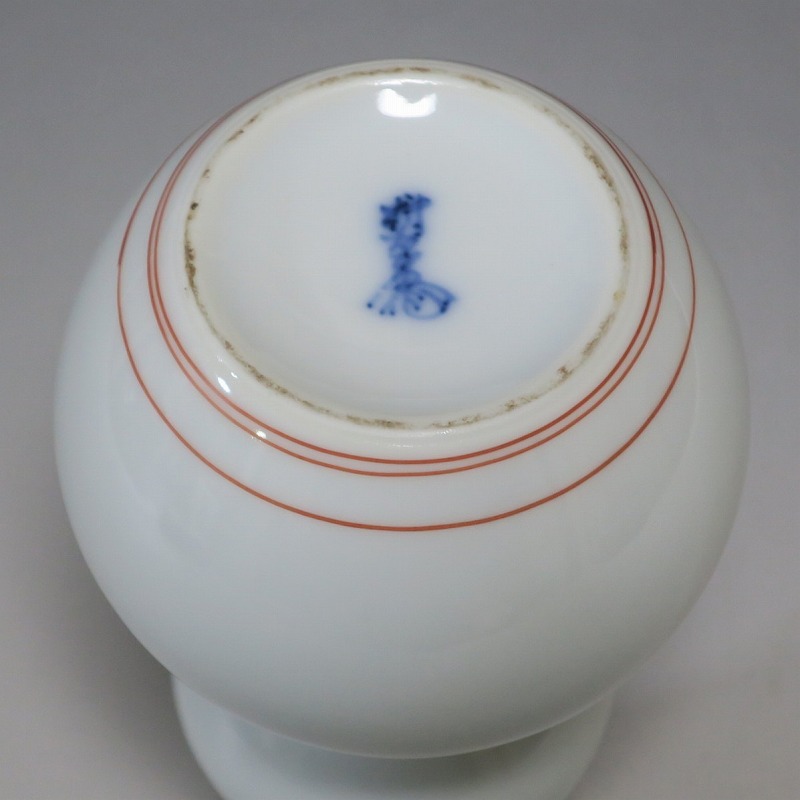 高さ 約15.3cm/胴径 約8.3cm 完品です。状態は写真でご確認ください。 十三代柿右衛門(1906年〜1982年)は、有田地方を代表する「柿右衛門」の窯元の13代目です。12代柿右衛門の長男として生まれ、有田工業学校製陶科を卒業、以来12代と共に柿右衛門の代名詞である「濁手」を復活させて作陶しました。紫綬褒章、勲四等旭日小綬章受賞。有田町名誉町民。本品は色絵で菊梅に鶯を描いたひょうたん型の徳利。白い肌に美しい色絵が施された作品です。柿右衛門の書付のある箱に入っています。本品を使って日本酒を飲むと味わい深いでしょう。 | ||
