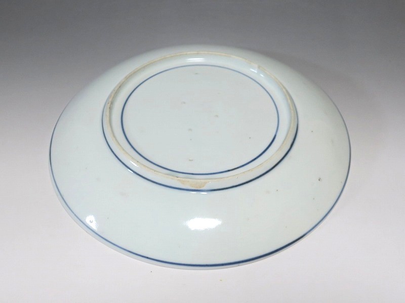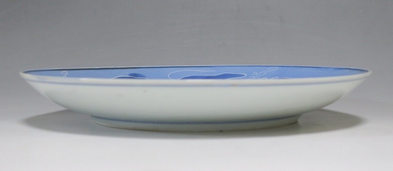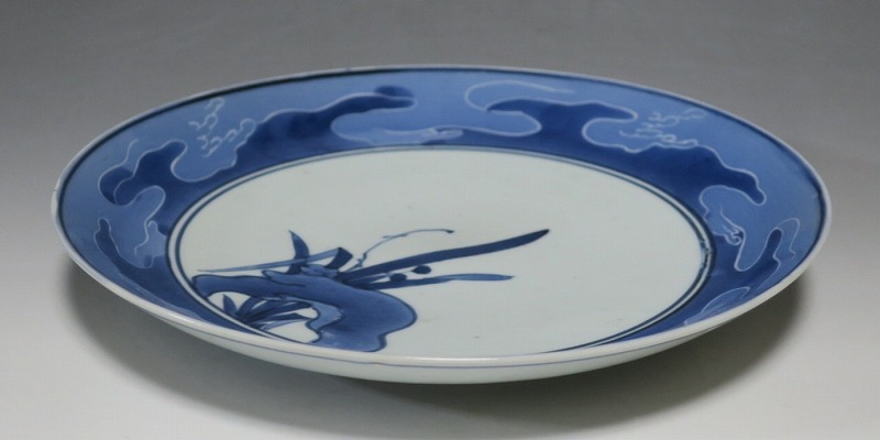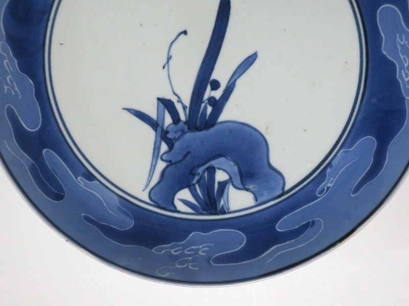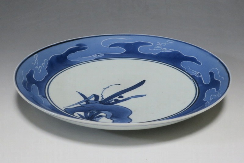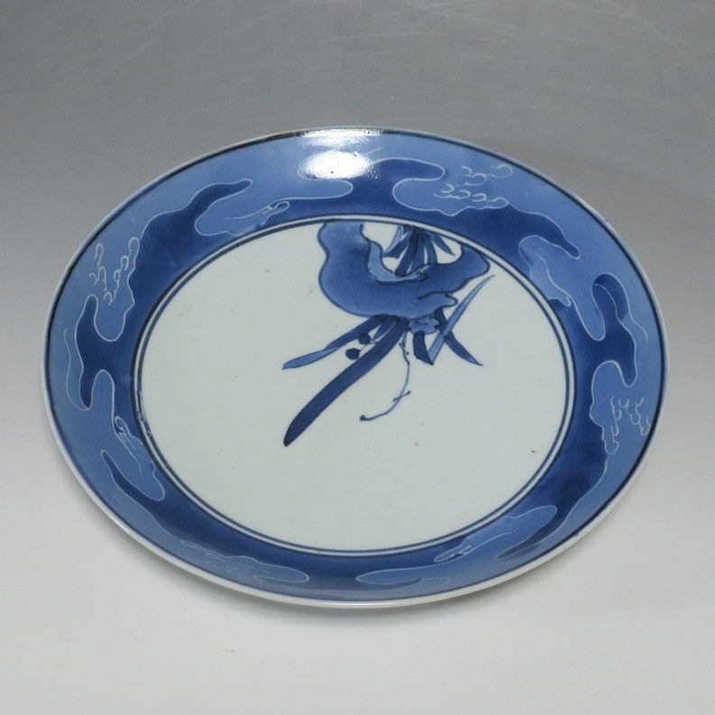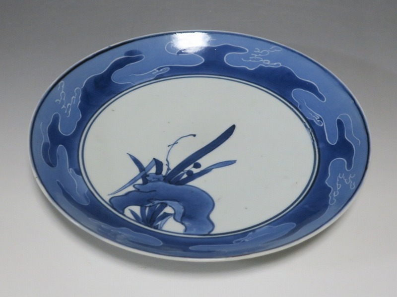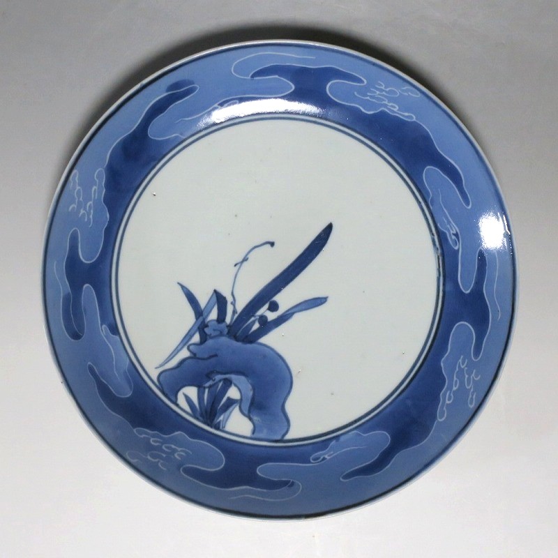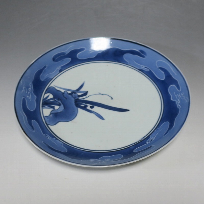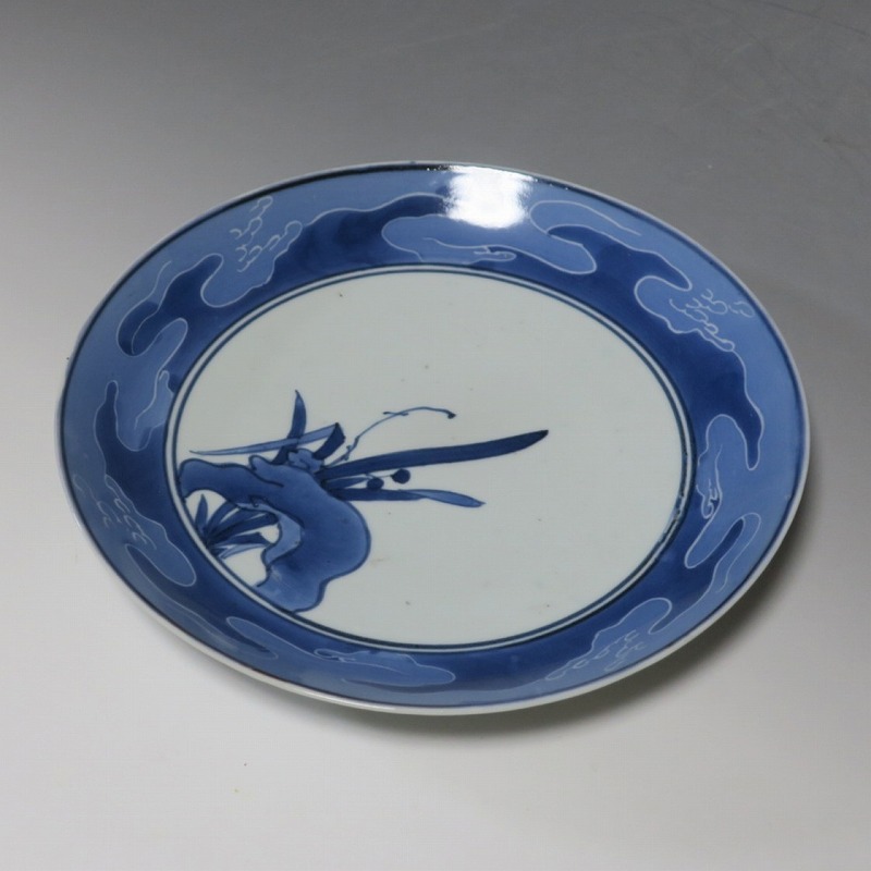 伊万里焼 藍九谷 水仙 流水文 七寸皿