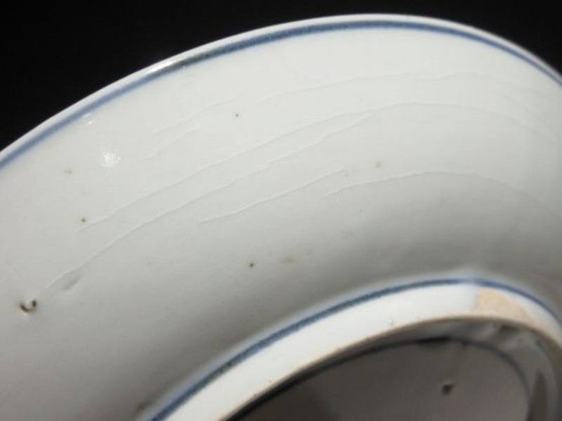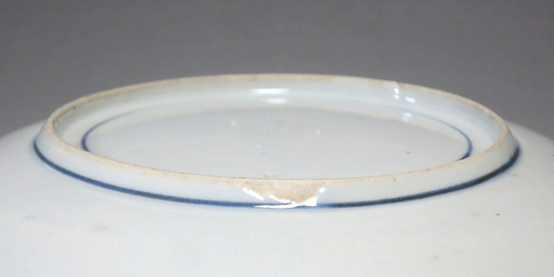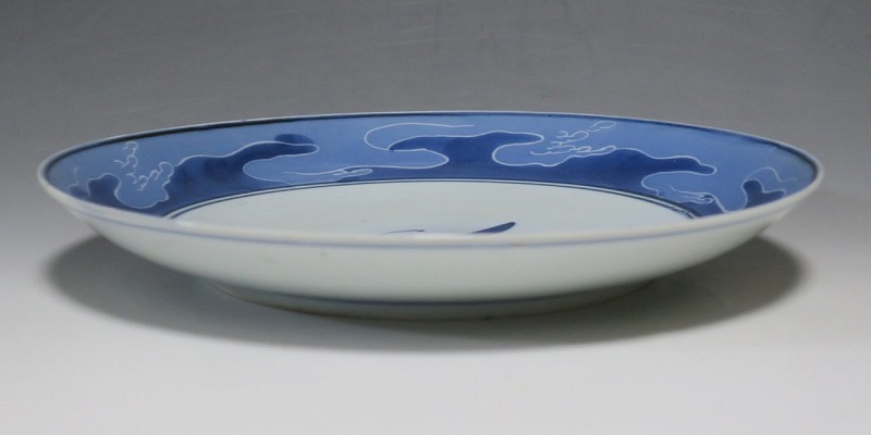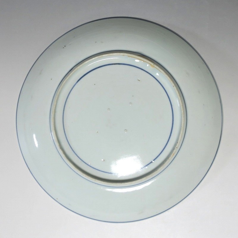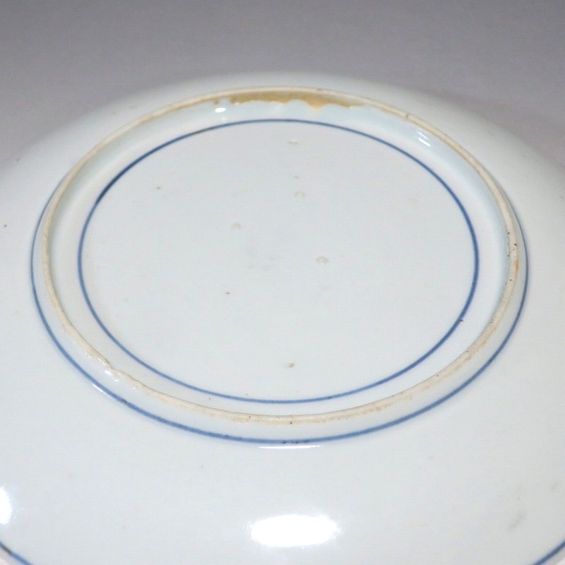 (江戸時代前期 17世紀後半) 商品番号 4225 口径 約21.3cm/高さ 約3.2cm/高台径 約12.5cm 高台に窯傷、裏の約1/4に一部甘手の部分がありますが、完品です。状態は写真でご確認ください。 藍九谷焼は初期伊万里時代を経た1650年代に有田周辺で製作された伊万里焼磁器です。17世紀前半に製作された初期伊万里は中国の染付磁器の写しでしたが、藍九谷が作られた時代は和風柄が主流となりました。本品は柿右衛門窯で製作された藍九谷の水仙流水文七寸皿。呉須と余白のバランスが美しい作品です。水仙と流水の絵が涼しさを感じさせてくれます。インテリア、食器としてお楽しみください。 | ||
