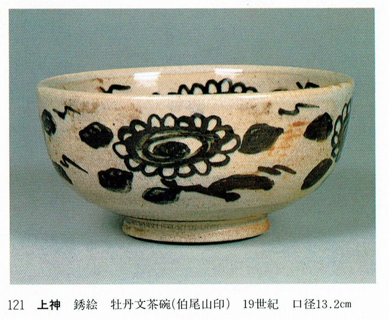 上神焼 伯尾山印 鉄絵花文 茶碗